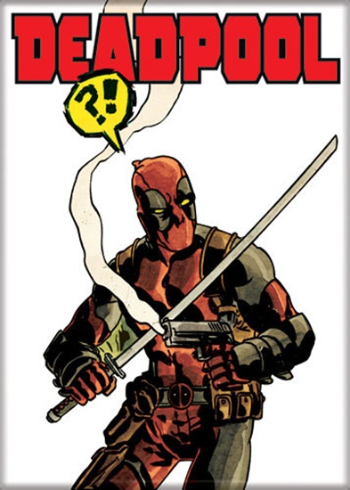 This is a licensed 2.5″ x 3.5″ magnet featuring comic art images of Deadpool the popular Marvel Comics character.