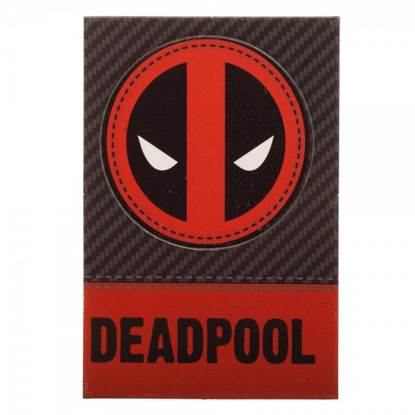 This is an 18″ long multi-colored, cloth and plastic lanyard in the image of the costume worn by Deadpool from Marvel Comics along with his name. There is also a 1.75″ wide metal eyes logo charm on the end of the lanyard. Included is a collectible sticker in the image of his eyes logo. It can be used to hold keys, name tags, and more. This is a mint, unused lanyard stored in a smoke and pet free environment.