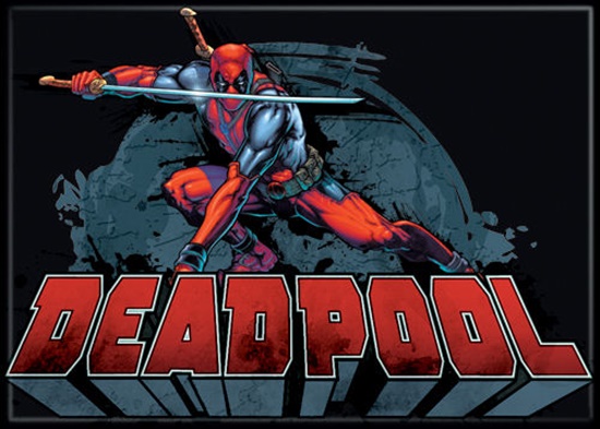 Marvel Comics Deadpool with Sword on Name Sword Comic Art Refrigerator Magnet