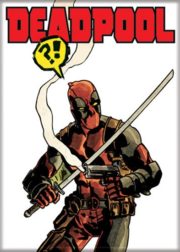 This is a licensed 2.5″ x 3.5″ magnet featuring comic art images of Deadpool the popular Marvel Comics character.