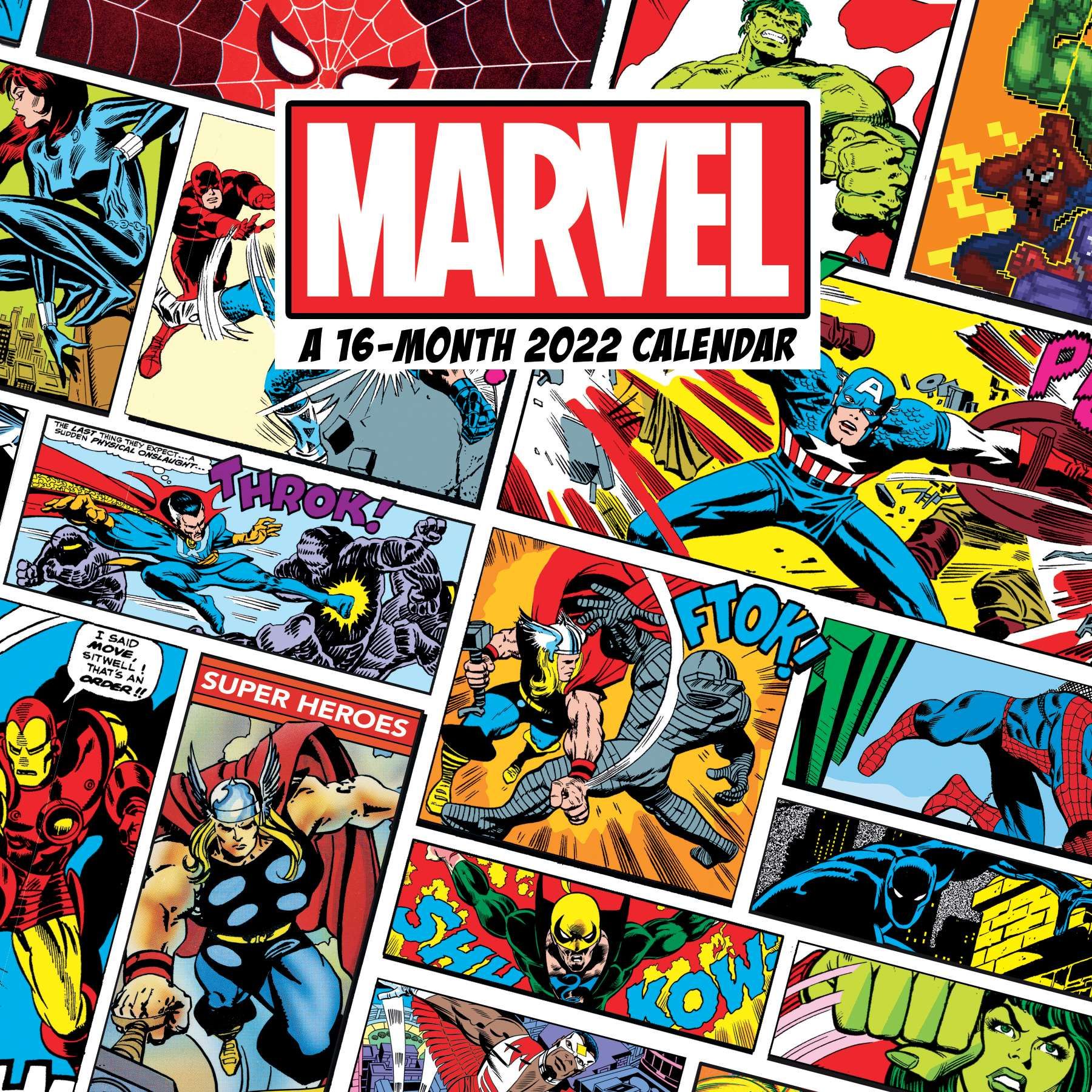 This is the 2022 16 month wall calendar featuring comic book art of some of the more popular heroes from the world of Marvel Comics. Classic Marvel comic book covers fill this 2022 Marvel Calendar, and fans of all ages will also enjoy the added bonus of some interior strips. From Spider-Man to Thor to Captain America, all your favorite superheroes are here. DateWorks 16-Month Wall Calendars include a page for each month of 2022, as well as the last four months of 2021. Each monthly calendar spread features enough room to mark important dates or write down reminder notes – making them perfect for staying organized and productive all year long. This is a mint, unused, original shrink wrap copy, printed by Trends Publishing and stored in a smoke and pet free environment.