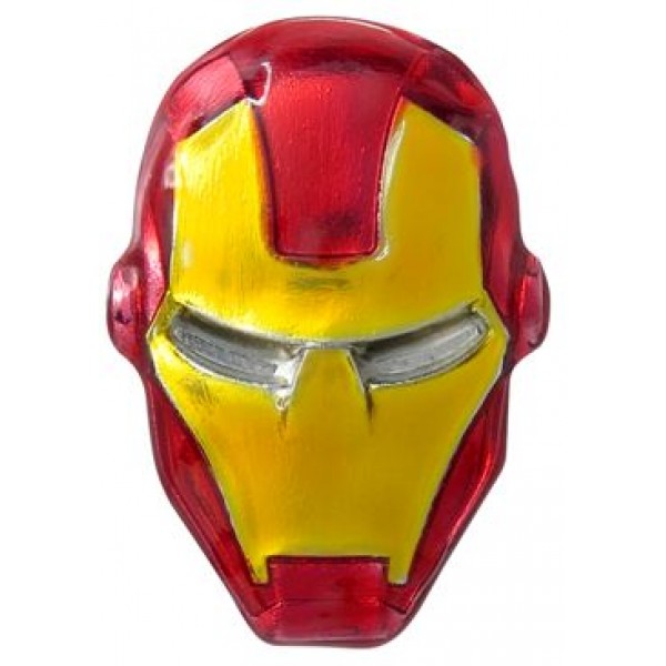 Produced by Monogram this is a licensed 1″ high, colored metal pewter lapel pin of the mask of Iron Man based upon the comic book from Marvel Comics. This is a new unused logo pin still in its original packaging stored in a smoke and pet free environment.