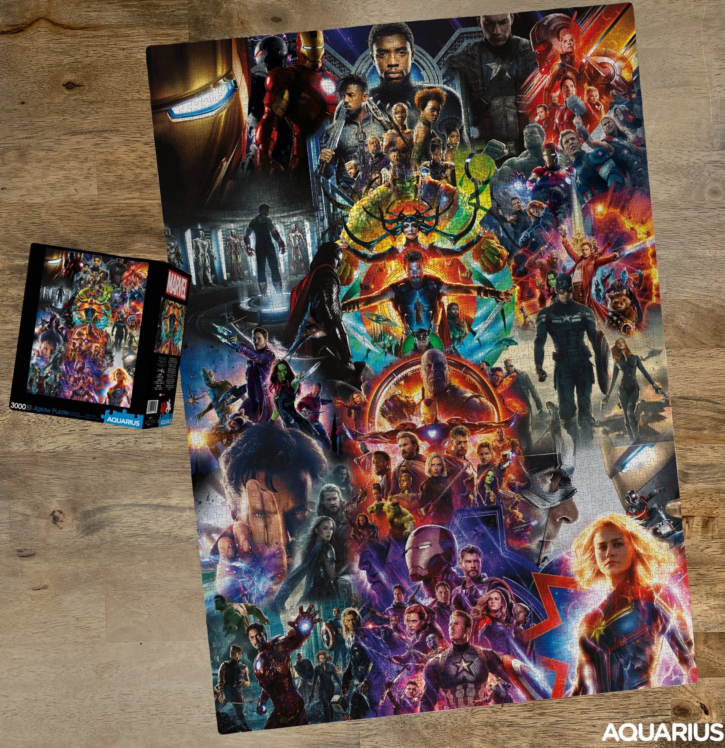 Journey into mystery and celebrate some of the greatest characters to ever grace the 4-color press! Challenge yourself and bring together all the pieces of this 3000 piece puzzle featuring a multitude of characters from across the Marvel Universe. Excelsior! This is an unused, mint in the box 3000 piece jigsaw puzzle produced by Aquarius. It is stock #68511, and measures 32″ x 45″ when completed and is stored in a smoke and pet free environment.