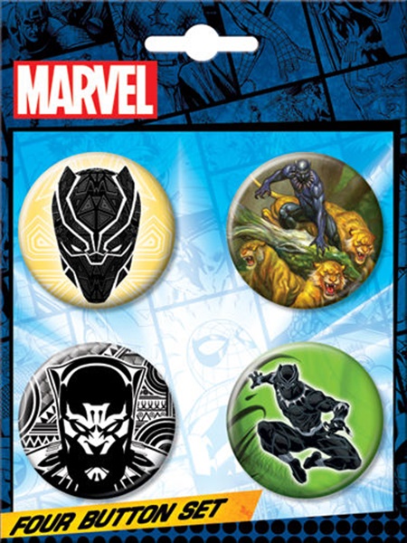 Produced by ATA BOY in 2015, this is set of four 1.25″ wide round buttons that features comic art images of Marvel Comics The Black Panther This is a new, never used, button set attached to a display card stored in a smoke and pet free environment.