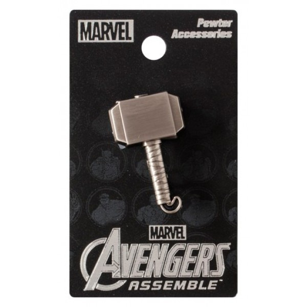 This is a licensed 1.25″ high, grey metal pewter lapel pin in the image of the Hammer of Thor, Mjolnir, as seen in Marvel comics and Marvel movies. This is a new unused logo pin still in its original packaging stored in a smoke and pet free environment.