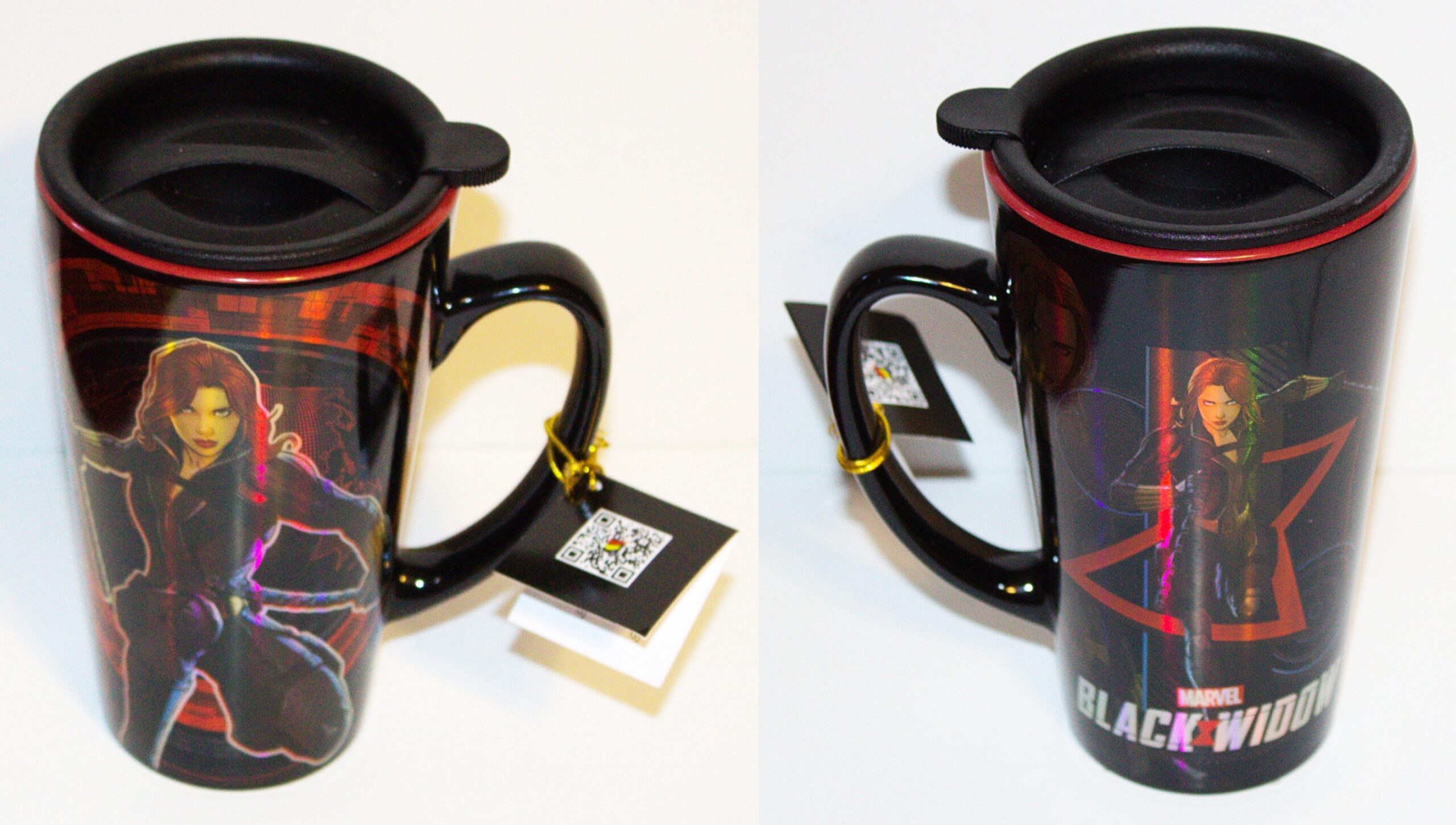 This is a 15 oz ceramic, insulated travel mug featuring the comic art image of of The Black Widow in action along with here logo. This is a new, unused, BPA free travel mug. Hand wash recommended. It has been stored in a smoke and pet free environment.