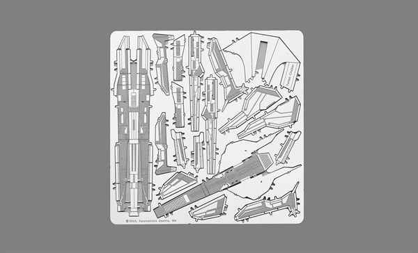 This amazingly detailed model starts as 4″ square sheet and finishes as a 3-D model. It is approximately 2.75″ tall when assembled and this one features the Turian Cruiser from the popular video game Mass Effect. The sheets contain detailed laser etching for easy removal. Complete instructions are included to show you how to pop out the pieces, bend the tabs, and connect them at the attachment points with an average assembly time of 30-45 minutes. It has been stored in a smoke and pet free environment. We also offer an optional LED base or a Solar Spinner for better display of your model.