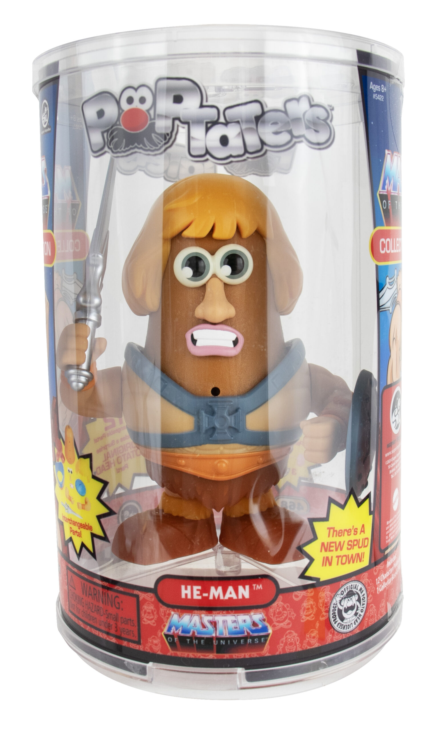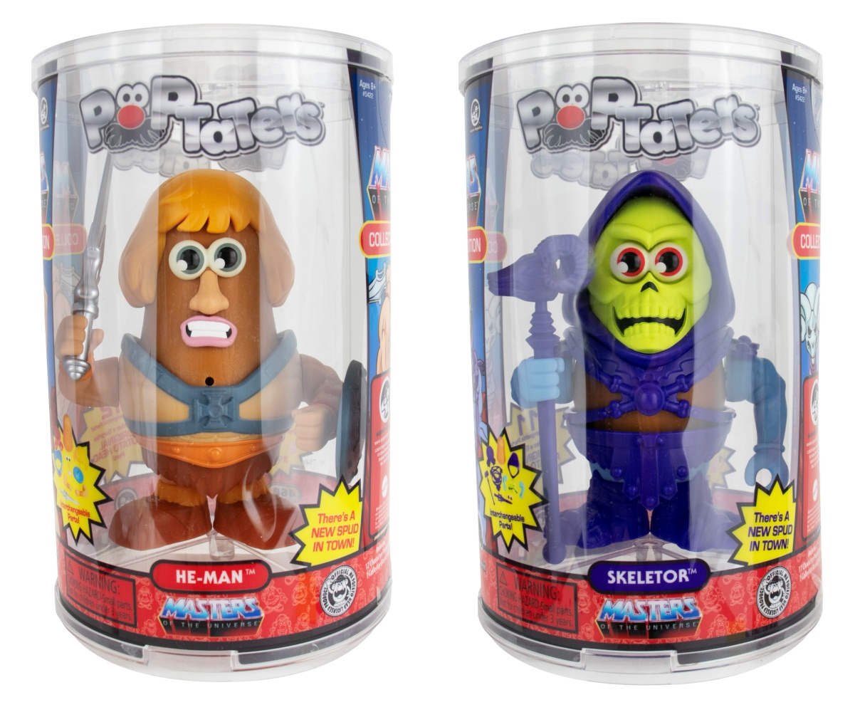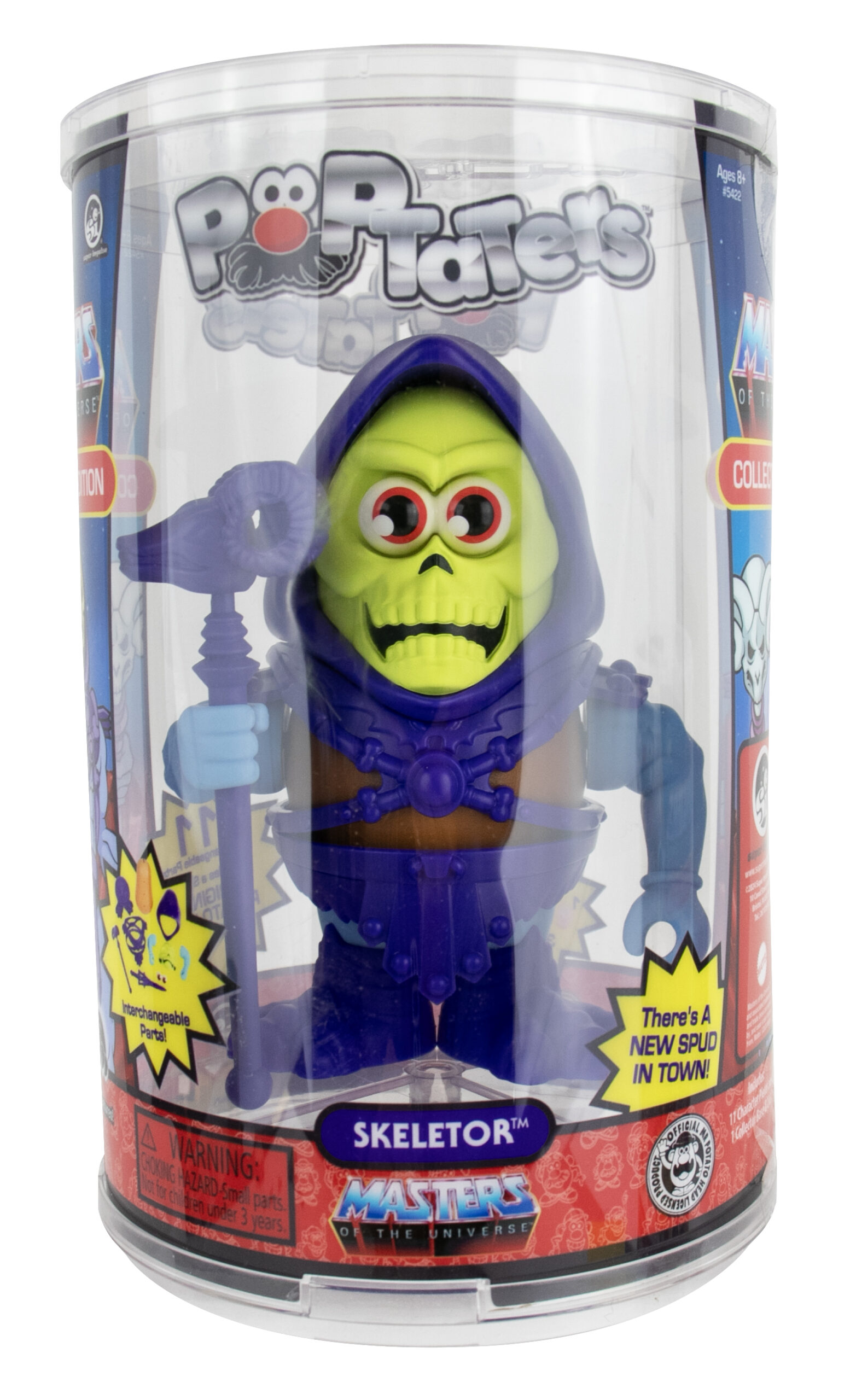 Produced by Super Impulse, this is part of their Poptaters lines of toys and features He-Man and Skeletor from the popular Masters of the Universe animated TV series. Poptaters He-Man and Skeletor are the ultimate fan mashup combining the iconic Potato Head with pop culture icons, creating hilarious, fun collectibles! This includes 12 removable, interchangeable facial and body parts for each including one surprise Potato Head original piece! The 4″ body nearly doubles in size when accessories are on. Purchased new by us from the manufacturer, it is stored in a smoke and pet free environment.