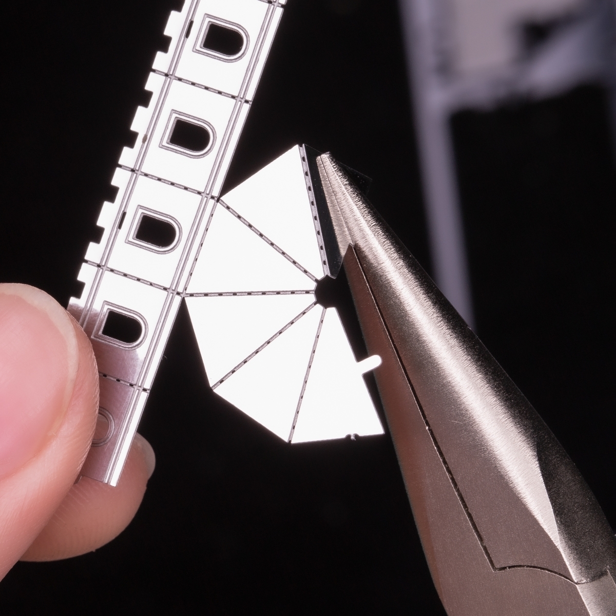To assist in assembly of the amazingly detailed models from fascinations you need the proper tools. This two piece set was specially designed for building Metal Earth® models by the creators of Metal Earth! Experience advanced precision with this new & improved tool kit. Modified tip on the clippers to snip out pieces in tighter spaces. Needle nose pliers with specially designed jaw for precise bending. It has been stored in a smoke and pet free environment.