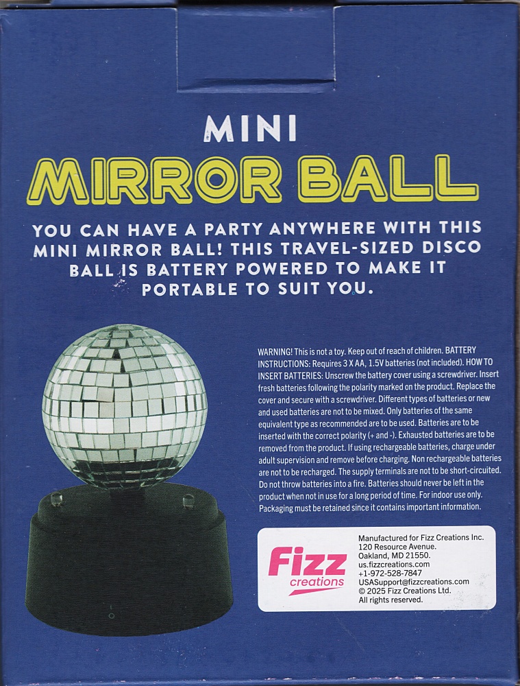 Produced by Fizz Creations, get the groove going with this dazzling Mini Mirror Ball, designed to turn any space into a dancefloor! Measuring 12.7cm/5″ tall and powered by 3x AA batteries, it features a rotating base that reflects light in every direction for a shimmering disco effect. Whether you’re at home, at a friend’s house, or setting up a surprise celebration, this compact showstopper adds instant retro vibes. Just pop in the batteries and get ready to boogie!