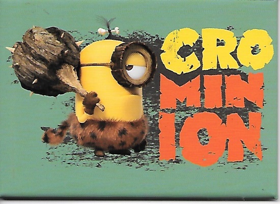 This is a licensed, large 2 1/2″ x 3 1/2″ refrigerator magnet featuring the art image of a Minion as a caveman from the new hit Minions movie based on the Despicable Me movies.