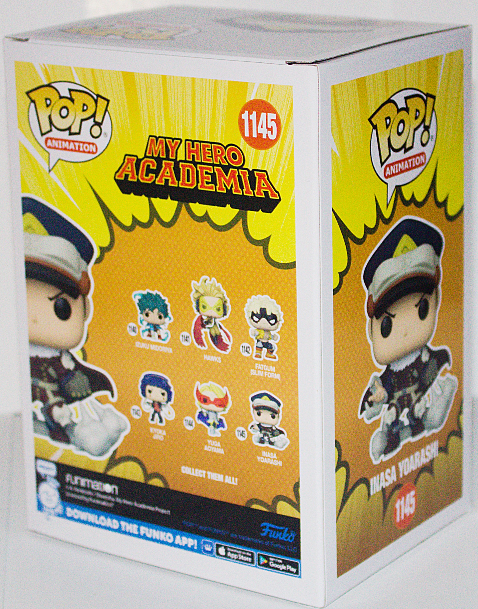 This is part of the FUNKO line of POP! vinyl figures and this series features characters from the Manga series My Hero Academia, measuring 3.75″ high. This comes in a sealed illustrated box with a clear plastic front that displays the toy and it stored in a smoke and pet free environment.