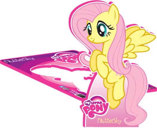 This is a 10.75″ tall desktop standee that features the animation art image of Fluttershy as seen in the animated TV series My Little Pony. It is a pop out stand up protected in shrink wrap and is stored in a smoke and pet free environment.