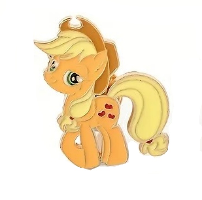 This new, unused .875″ wide x 1.125″ high enamel metal pin features the image of Apple Jack as seen on the popular animated TV series My Little Pony. It is attached with a clutch back pin and has been stored in a smoke and pet free environment.