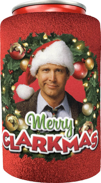 This is an illustrated can cooler featuring an image of Clark surrounded by a Christmas wreath from the classic comedy holiday movie National Lampoon’s Christmas Vacation. Spot Clean recommended. It is a new and unused can cooler huggie koozie stored in a smoke and pet free environment.
