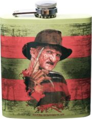 This image of Freddy Krueger from the Nightmare On Elm Street movies will keep you warm from fright in this colorful pom beanie winter hat. This hat is made of super soft acrylic yarn in red, green, brown and black and warns others not to fall asleep. It is stored in a smoke and pet free environment.