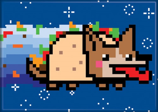 This is a licensed 2.5″ x 3.5″ magnet featuring art images from the internet and YouTube sensation Nyan Cat. Originally called Pop Tart Cat, it became popular when combined with the music of Hatsune Miku (see our listings for that as well). It is new and unused and stored in a smoke and pet free environment.