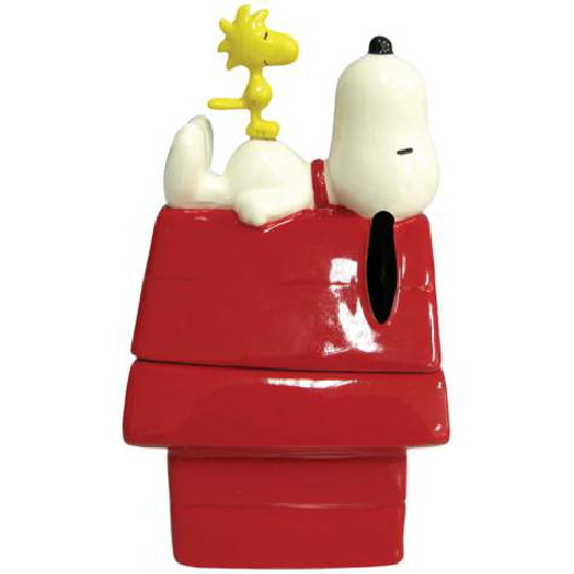 This is a new and unused stoneware ceramic salt and pepper set featuring the figures of Snoopy and Woodstock on top of Snoopy’s doghouse from the Peanuts comic strip and animated cartoon series. It measures 4.5″ high and comes in an illustrated box. Embedded magnets hold the set together when not being used. No longer being made, it has been stored in a smoke and pet free environment.