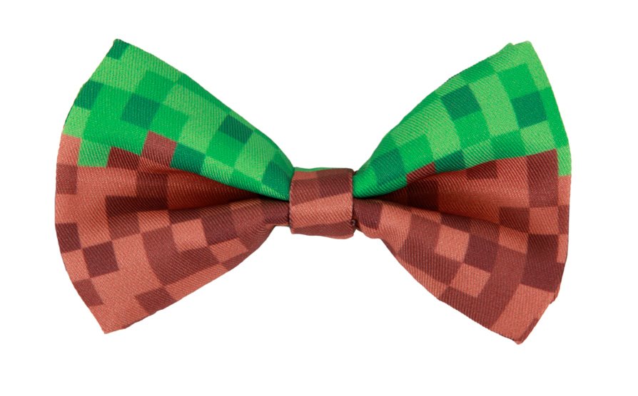 This is a new and unused green and brown bow tie designed to look like an 8 bit pixelated image from the early days of video and computer gaming. Get your geek on with this retro costume accessory. Designed for ages 14 and up, it is a one size fits all, measuring over 4.5″ wide, and is stored in a smoke and pet free environment.