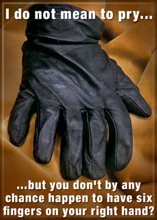This is a licensed 2.5″ x 3.5″ magnet featuring the image of Inigo Montoya’s hand a in a black glove with the words “I do not mean to pry….. but you don’t by any chance happen to have six fingers on your right hand?” from the cult movie The Princess Bride. This is a new, unused magnet. It has been stored in a smoke and pet free environment.
