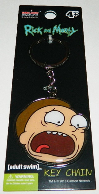 Produced in 2017 is this 3.75″ high and 2″ wide colored metal key chain/key ring that features the head of Morty from the hit Adult Swim animated TV series Rick and Morty. This is a mint, unused key chain/key ring stored in a smoke and pet free environment.