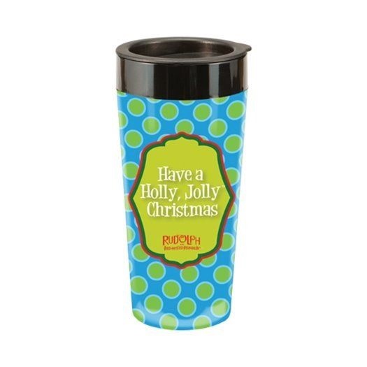 This is a new and unused plastic travel mug that features the art of Rudolph, from the popular TV movie Rudolph the Red Nosed Reindeer, on the front and the phrase “Have a Holly Jolly Christmas” on the back. This durable plastic travel mug is lightweight with a secure snap on lid and measures 3.25″ x 3.5″ x 7″. Hand wash is recommended and it is stored in a smoke and pet free environment.