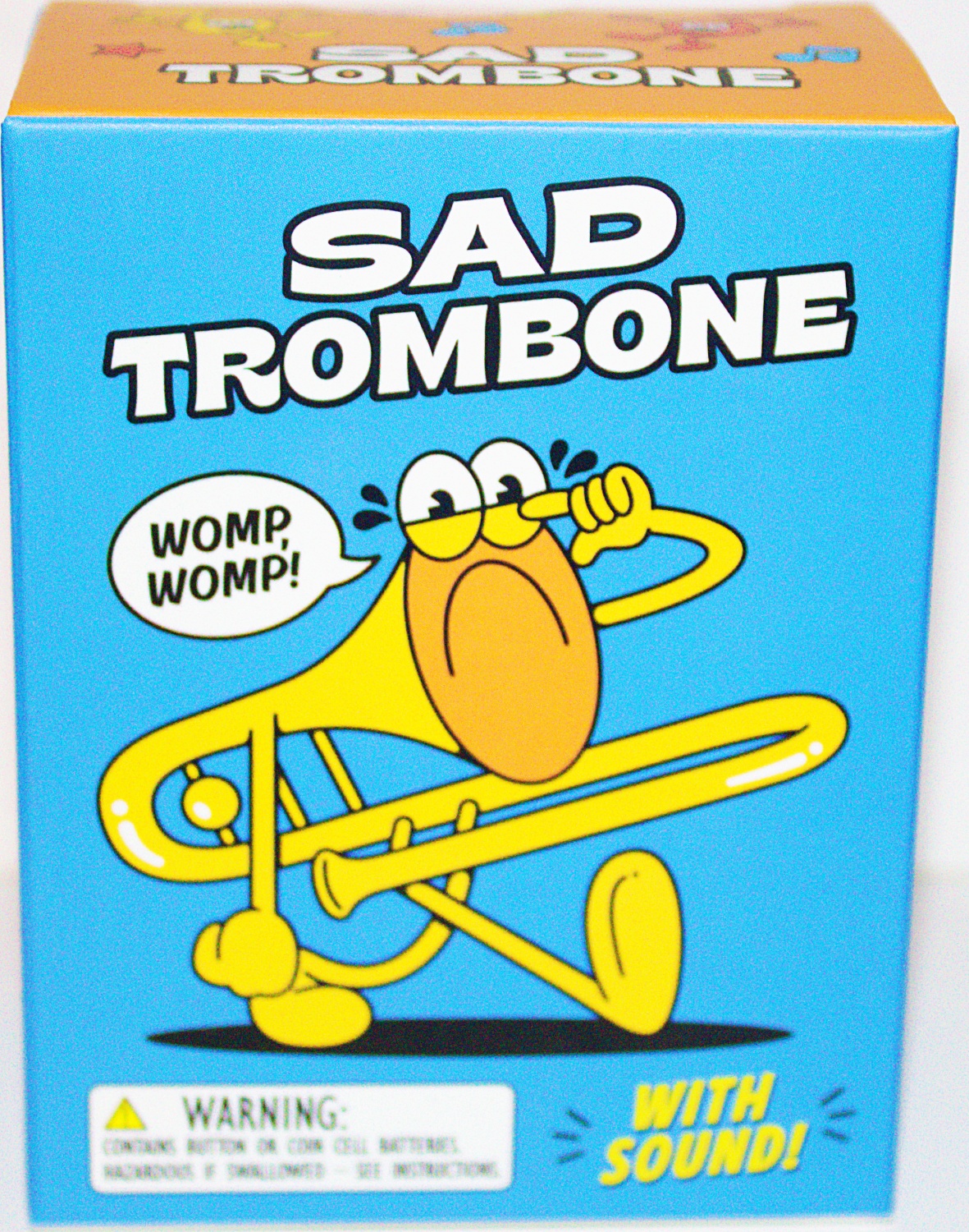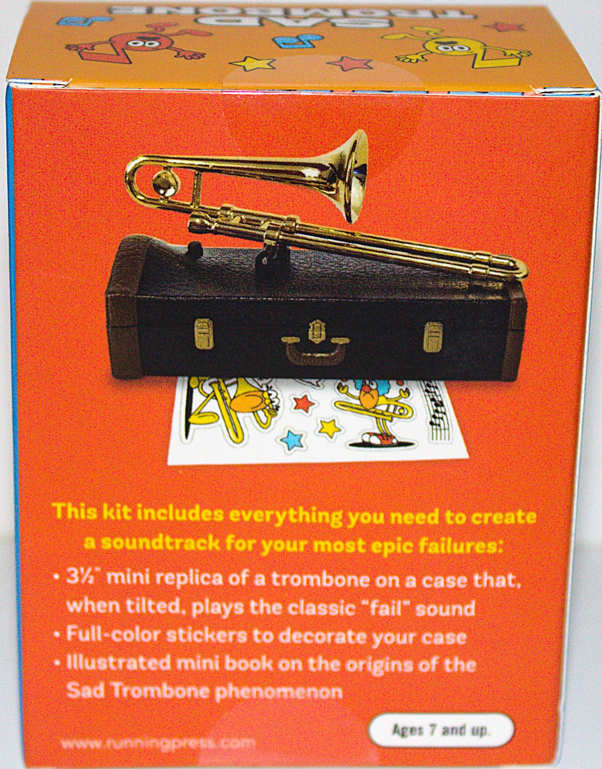Womp, womp! This Sad Trombone, positioned on trombone case base, includes everything you need to create a soundtrack for your epic fails: plays the notorious “womp-womp-womp-womp” sound when the trombone is slightly tilted. Includes a 3″ replica of a real trombone resting on a trombone case base. Also includes two sticker sheets to decorate and personalize your trombone case. Plus you get a 32-page mini book about the origins of the sad trombone notes and trombone songs. Makes a great humorous gag gift or stocking stuffer. Includes button cell batteries. This is a new, sealed copy that we purchased direct from the publisher and it has been stored in a smoke and pet free environment.
