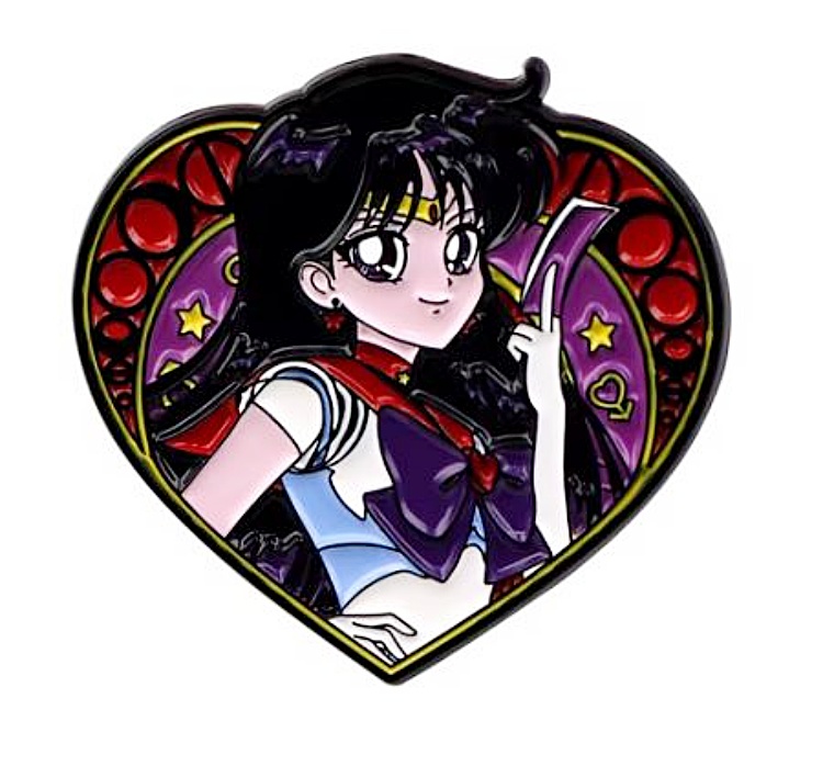 This is a 1.25″ tall x 1.375 wide metal enamel pin featuring the smiling image of Sailor Mars in a heart from the popular Japanese anime series Sailor Moon. It is in mint, unused condition stored in a smoke and pet free environment.
