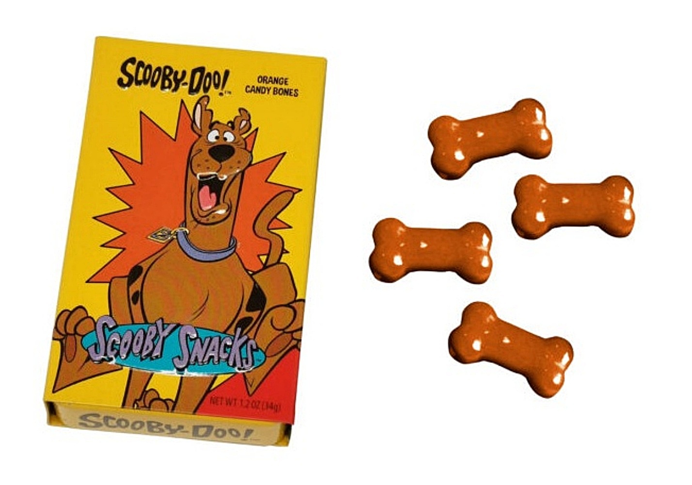 Would you do it for a Scooby Snack? Let’s do what we do best Scoob, eat! Filled with 1 ounce of bone-shaped orange flavored bones. This is a new, never opened box of 12 tins of candy stored in a smoke and pet free environment.