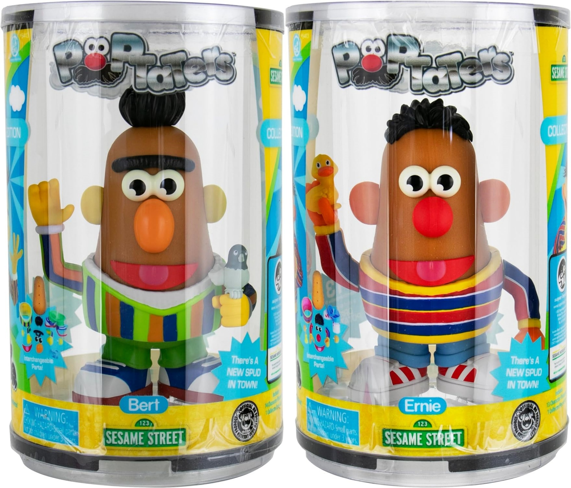Produced by Super Impulse, this is part of their Poptaters lines of toys and features Bert and Ernie from the long running Sesame Street TV series. Poptaters Bert and Ernie are the ultimate fan mashup combining the iconic Potato Head with pop culture icons, creating hilarious, fun collectibles! This includes 14 removable, interchangeable facial and body parts for each including one surprise Potato Head original piece! The 4″ body nearly doubles in size when accessories are on. Purchased new by us from the manufacturer, it is stored in a smoke and pet free environment.