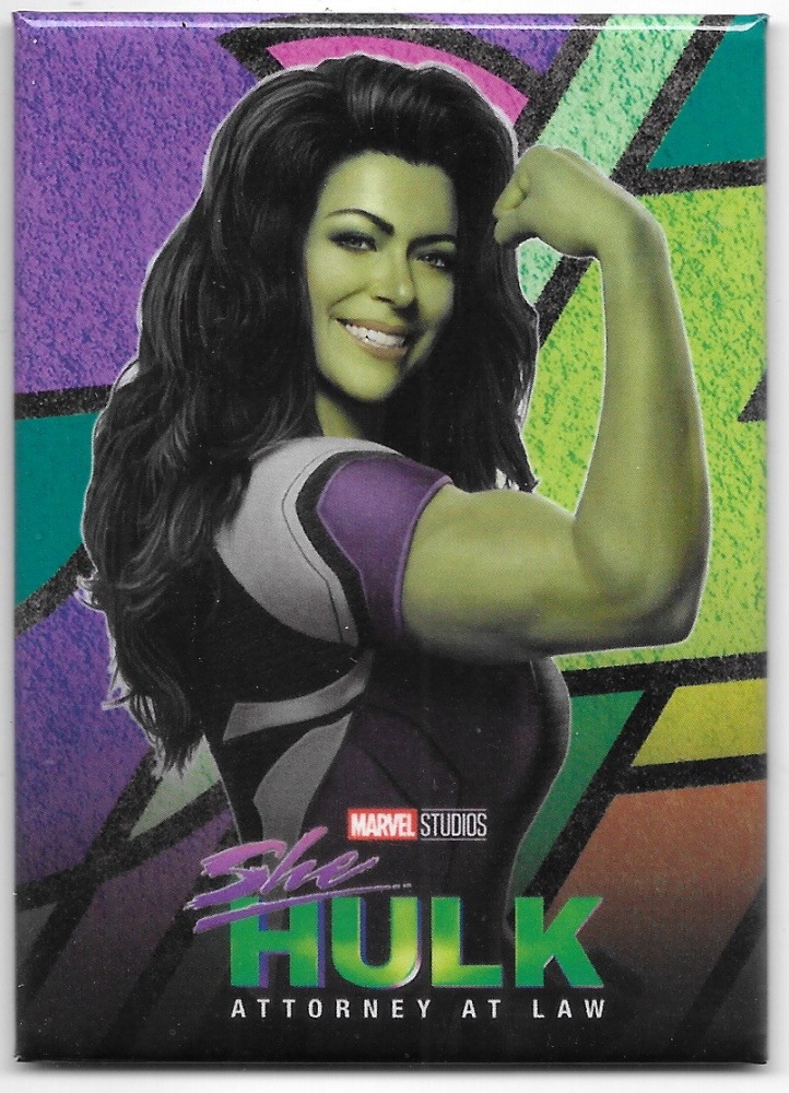 Produced by Ata-Boy, this is a licensed, large 2.5″ x 3.5″ magnet featuring images and characters from the She Hulk TV Series. This is a new, unused magnet stored in a smoke and pet free environment.
