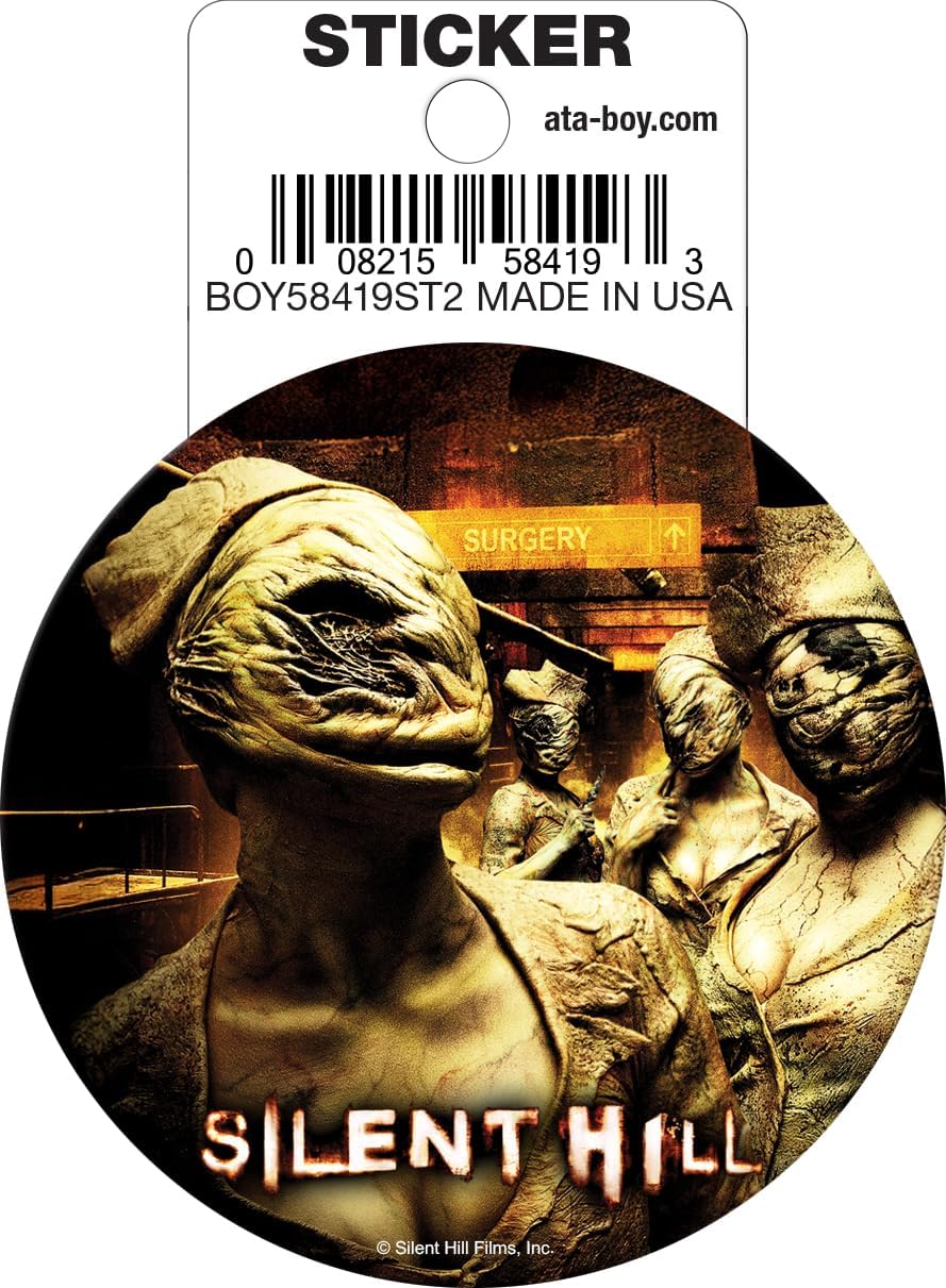 This is a 3″ high (approximate) sticker decal that features images from the popular Japanes horror video game Silent Hill. This is a new, unused sticker with an easy front peel off removal that is stored in a smoke and pet free environment.