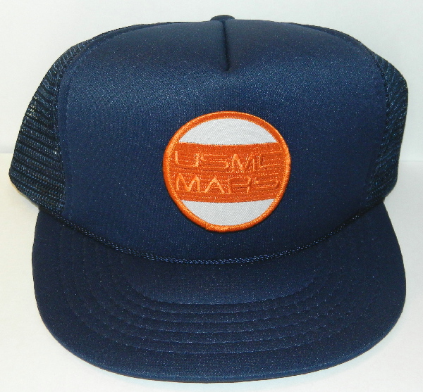 This is a BLUE cloth adjustable baseball style (meaning a round bill) hat (made of 65% polyester and 35% cotton) with a 100% polyester mesh back. It has an embroidered patch on the front. This patch is an exact copy of the ones worn on the uniforms by the crew on the popular cult TV show, Space Above and Beyond. This is a new, never worn hat stored in a smoke and pet free environment.