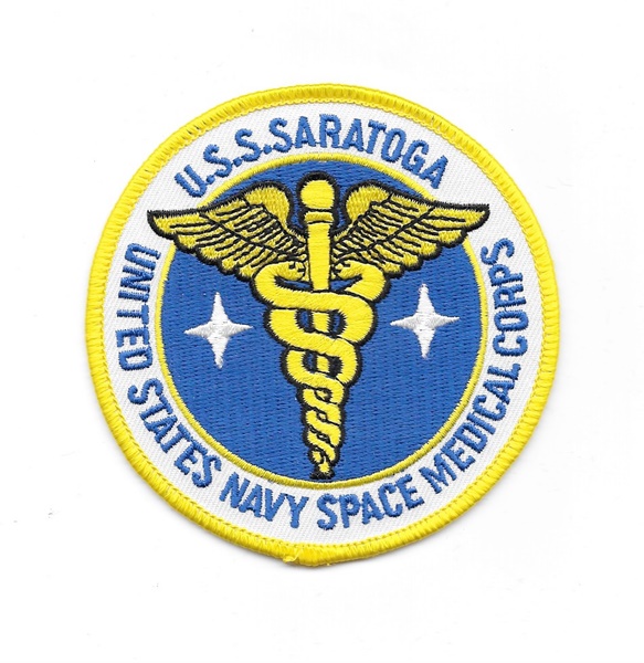 This patch is the logo of the United States Navy Space Medical Corps, U.S.S. Saratoga division, as seen in the now cult sci-fi TV series, `Space Above And Beyond’. This patch measures 3.5″ across and is mint and unused. It has a glue backing for easy application to hats, shirts, jackets and bags and is stored in a smoke and pet free environment.