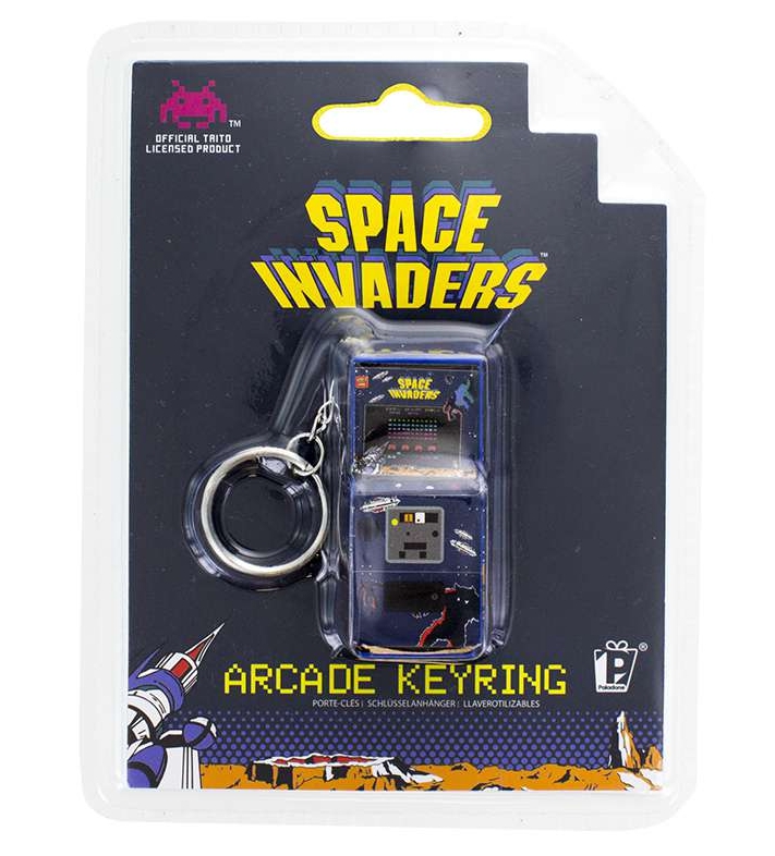 A pocket-sized piece of classic gaming memorabilia – this retro-cool Space Invaders Arcade Keyring features the iconic arcade design of the original game. A mini arcade machine inspired by the classic alien shooter game, the Space Invaders Arcade Keyring is a perfect talisman for gamers and fans of all things retro. With its keyring attachment, this is a fun addition to your keys, or even a great bag or backpack charm. This is a mint, unused licensed metal key chain measuring 2.25″ long (without the key ring) and is stored in a smoke and pet free environment.