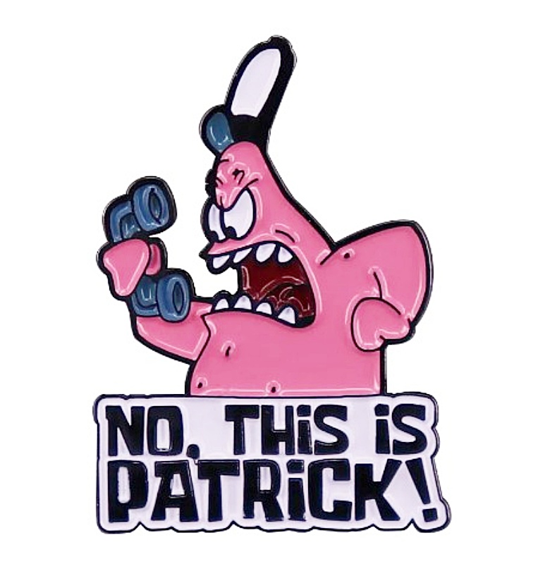 This new, unused metal enamel pin measures 1.375″ high x .875″ wide and features Patrick holding a telephone and yelling “No, This Is Patrick!”, the friend of SpongeBob SquarePants, from the hit animated TV series. It has been stored in a smoke and pet free environment.
