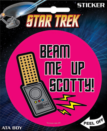 Produced in 2011 by Ata Boy, this is one of a set of 12 different peel off large sticker decals featuring images from the classic Star Trek TV series. Each card measures 4 1/2″ x 5 1/2″ with the actual decal measuring around 4″ high. This is a new, unused item that has been stored in a smoke and pet free environment.