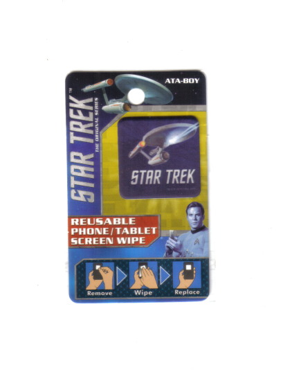 Produced by Ata Boy, this is one of a set of 13 different reusable screen wipes for your phone or tablet that features images and logos from the original classic Star Trek TV series and from the Star Trek: The Next Generation TV series. No longer being made, this is a mint, unused sealed wipe stored in a smoke and pet free environment.