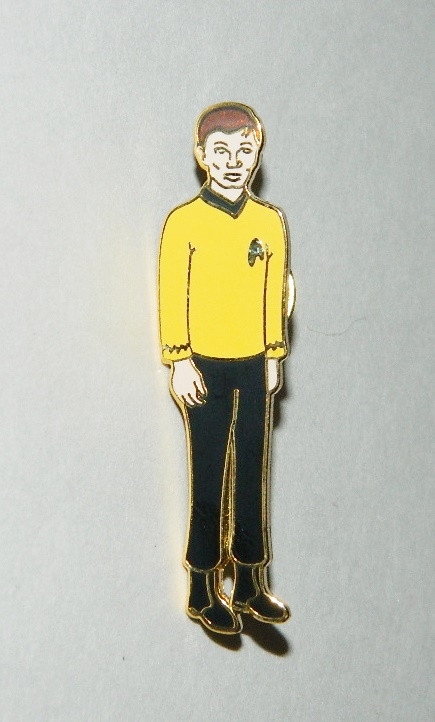 This cloisonne pin features the die-cut image of the classic Lieutenant Hikaru Sulu as seen on TV’s Star Trek the Original Series. It measures 2.25″ high and is a mint, unworn pin, long out of production, made by the Hollywood Pins Company. It has had limited release and is not easily found outside of Star Trek conventions. Hollywood Pins closed down in October 2001 so this pin is next to impossible to find. It has been stored in a smoke and pet free environment.