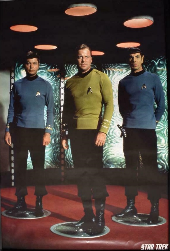 Produced in 2000 by Creation, this 24″ x 36″ poster depicts a transporter photo of the classic Star Trek TV series main characters of Captain James T. Kirk, Mr. Spock, and Doctor McCoy. Produced on heavier than normal stock, this is a flat, new and unused poster. Original released at a $15.00 retail, and now out of print and sold out from the publisher (we bought them all) we are offering it at this exclusive price. The poster is in new, unused, near mint condition, and is shipped rolled. It has been stored in a smoke and pet free environment.