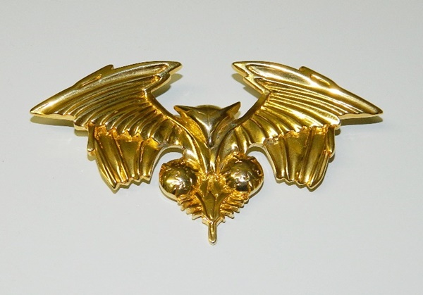 This 3.75″ wide 3D pin reproduces the Romulan Crest, as seen in the Star Trek: The Next Generation movie Nemesis. This is a large, heavy, metal embossed bright gold toned pin in mint condition, produced in 2002 by Filmvelt in Germany. This had limited European release and was never distributed in the United States so it is not easily found outside of Star Trek conventions. It is in mint, unused condition stored in a smoke and pet free environment. We also have the silver toned version.
