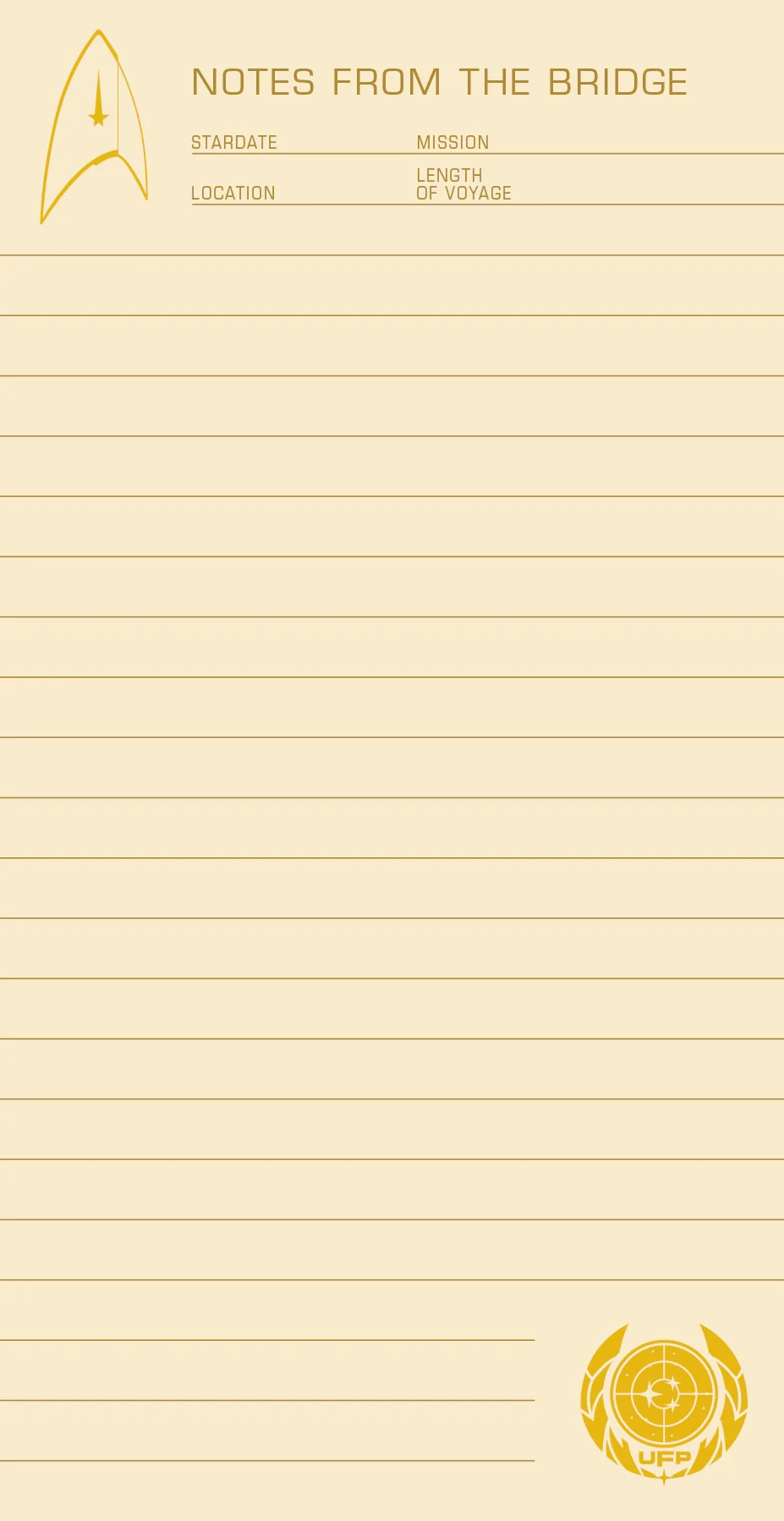 Whether you’re planning to explore a Federation planet, treat crew members for Rigelian Fever, monitor the warp core, or chart an unknown star system, the Star Trek Notepad has plenty of room to document all the details you’ll need to carry out your next mission in the Final Frontier. It measures 8.25″ x 4.25″ with 65 lined pages for all your observations. It is new and unused, still sealed in its original shrink wrap and it has been stored in a smoke and pet free environment.