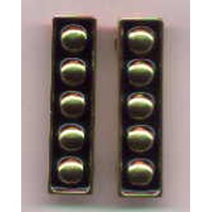 This is a pair of metal enamel pins that are exact reproductions of the ones worn on each side of the collar for the rank of Fleet Admiral in the 3rd-7th seasons of Star Trek: The Next Generation, the Next Generation movies, as well as on Star Trek: Deep Space Nine and Star Trek: Voyager. They are in a shiny cloisonne gold, with black centers, measuring 1.75″ across. These are new, unused, mint condition pins made by the Hollywood Pins Company and stored in a smoke and pet free environment. They have had limited release and are not easily found outside of Star Trek conventions. Hollywood Pins closed down in October 2001 so these pins will soon be next to impossible to find.