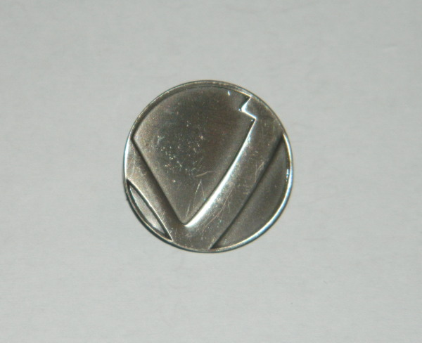 This hard to find pin, can be seen on the uniforms of Klingon commanders, on Star Trek: The Next Generation. It measures .875″ across, and has a pewter like, antique silver finish. This is a new, near mint pin, never worn or used and still sealed in a bag, made by the Hollywood Pins Company. It has had limited release and is not easily found outside of Star Trek conventions. Hollywood Pins closed down in October 2001 so this pin will soon be next to impossible to find. This is stored in a smoke and pet free environment.