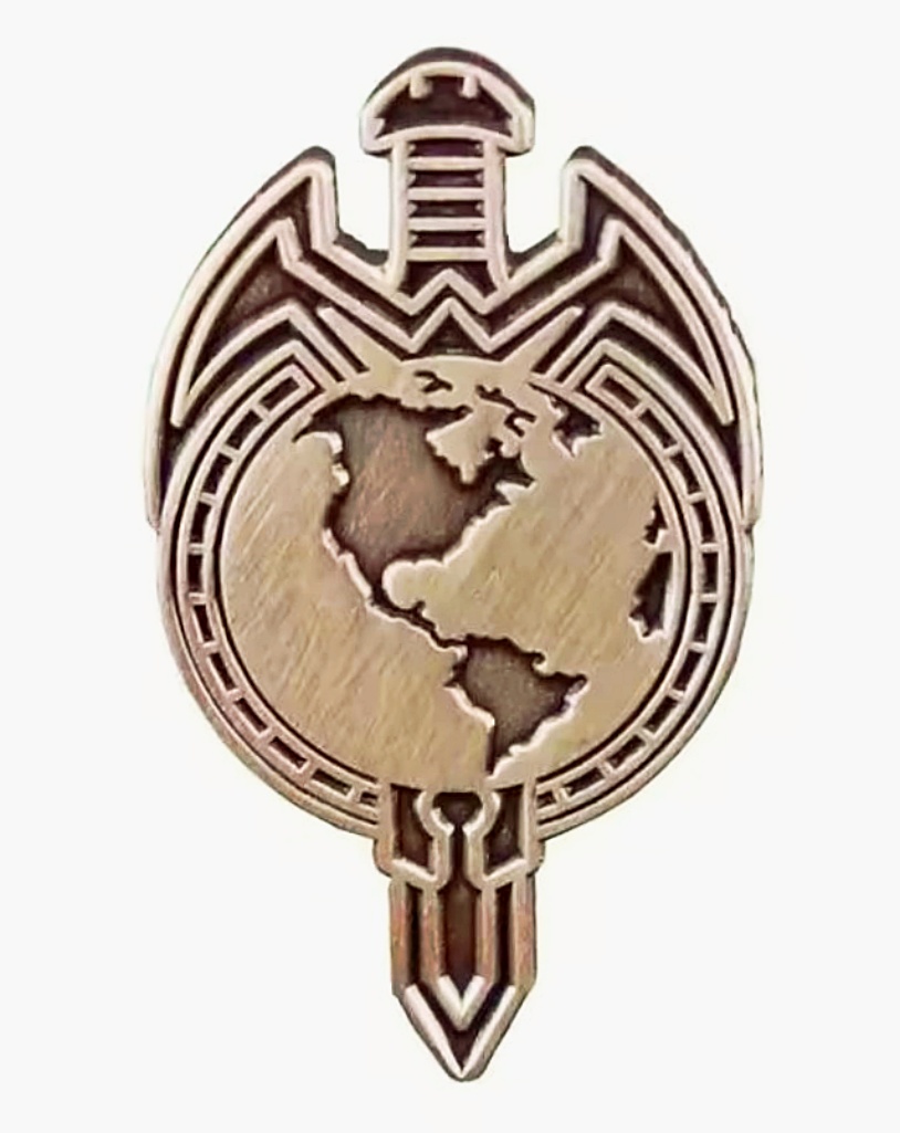 This 1.375″ tall enamel metal pin features the image of the Mirror Universe Terran Empire Logo taken from the Star Trek: The Next Generation comic book story line. This is a mint, never used pin that comes in a sealed package. This pin is not easily found outside of Star Trek conventions due to low distribution. It is stored in a smoke and pet free environment.