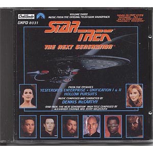 First produced in 1992, this mint, original shrinkwrap, never played music cd contains the music from the Star Trek: The Next Generation episodes “Yesterday’s Enterprise”, “Unification I & II”, and “Hollow Pursuits”. This is stored in a smoke and pet free environment.