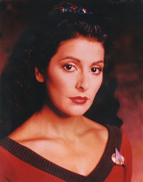 This is an 8″ x 10″ photograph of Deanna Troi from the TV series Star Trek: The Next Generation. This photo is new and unused, purchased by us from the printer.