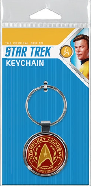 This is a 1.375″ wide colored metal key chain that features the Starfleet Academy Command logo from the original classic Star Trek TV series. This is a mint, unused key chain stored in a smoke and pet free environment.