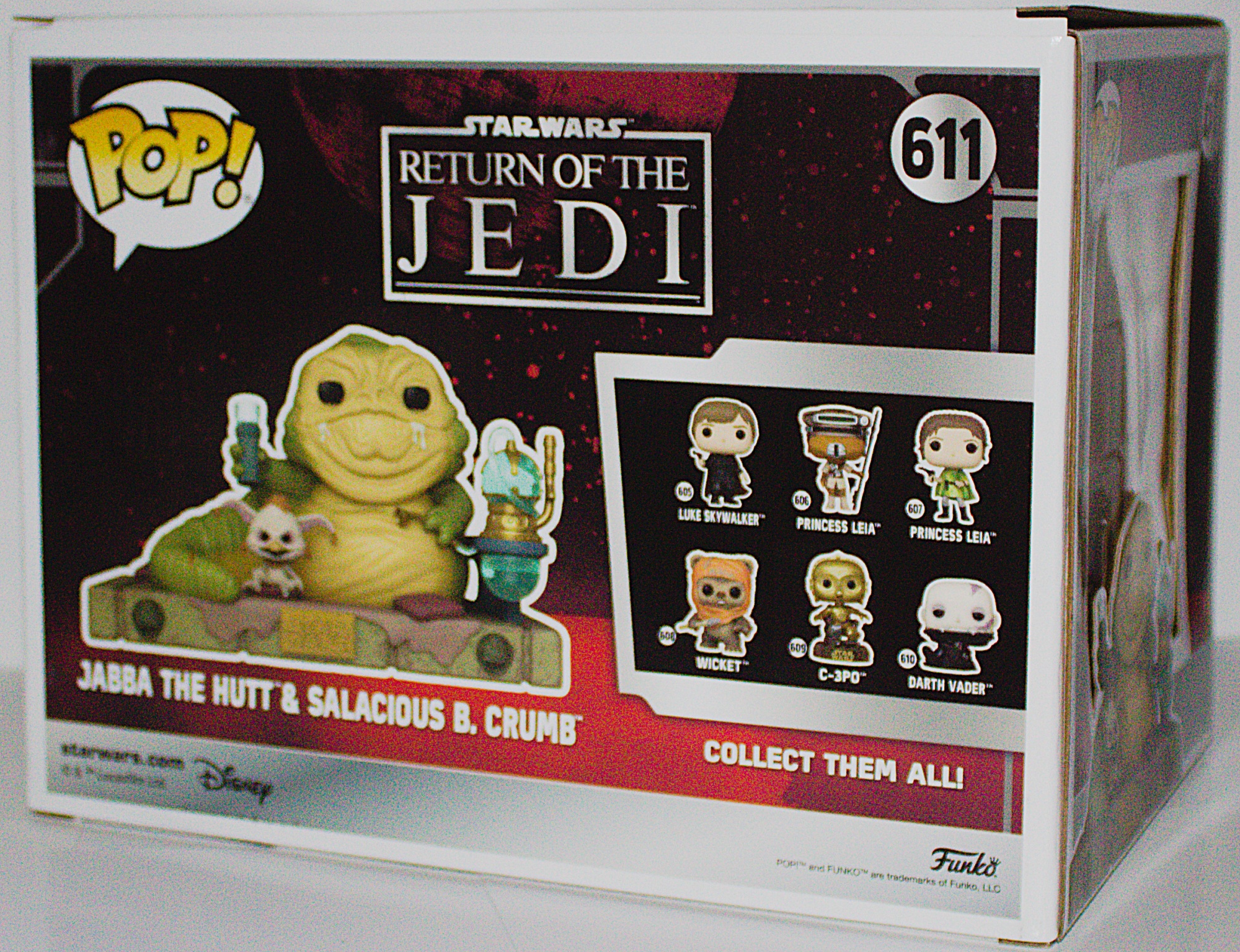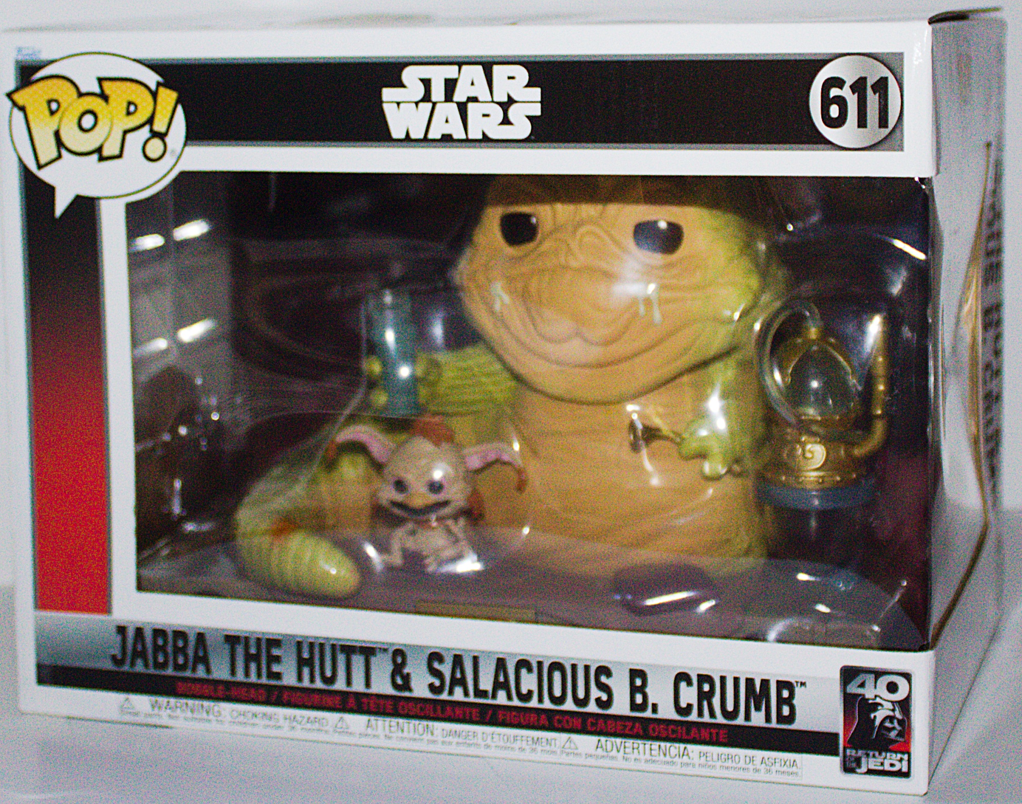 This is part of the FUNKO line of POP vinyl movie Moments and this series features characters from the Star Wars 40th anniversary of Return of the Jedi. It is 6″ tall on a stand and almost 9″ long. This comes in a sealed illustrated box with a clear plastic front that displays the toy and it is stored in a smoke and pet free environment.