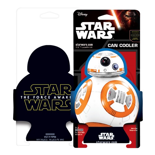 This is an illustrated insulated full color neoprene drink can cooler huggie featuring the silhouette Die-cut image of BB-8 from the Star Wars movies. It is a new and unused licensed can cooler stored in a smoke and pet free environment.